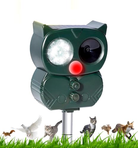 – Ultrasuono + forte LED lampeggiante + allarme sonoro: Ci sono 8 forti luci a LED negli occhi del gufo. Per quanto riguarda la sua bocca, è un trasmettitore ad ultrasuoni. Quando il repellente esterno rileva il movimento e il calore corporeo, emette una miscela di ultrasuoni di varie onde, forti luci lampeggianti e allarme acustico per spaventare gli animali. Non c’è pericolo per l’uomo o gli animali.