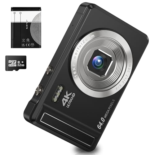 Fotocamera Digitale 4K 64MP con Scheda SD da 32GB – Fotocamera Compatta, Mini Camera per Bambini, Principianti e Teenager con Autofocus, Zoom Digitale 16X e Batteria Ricaricabile
